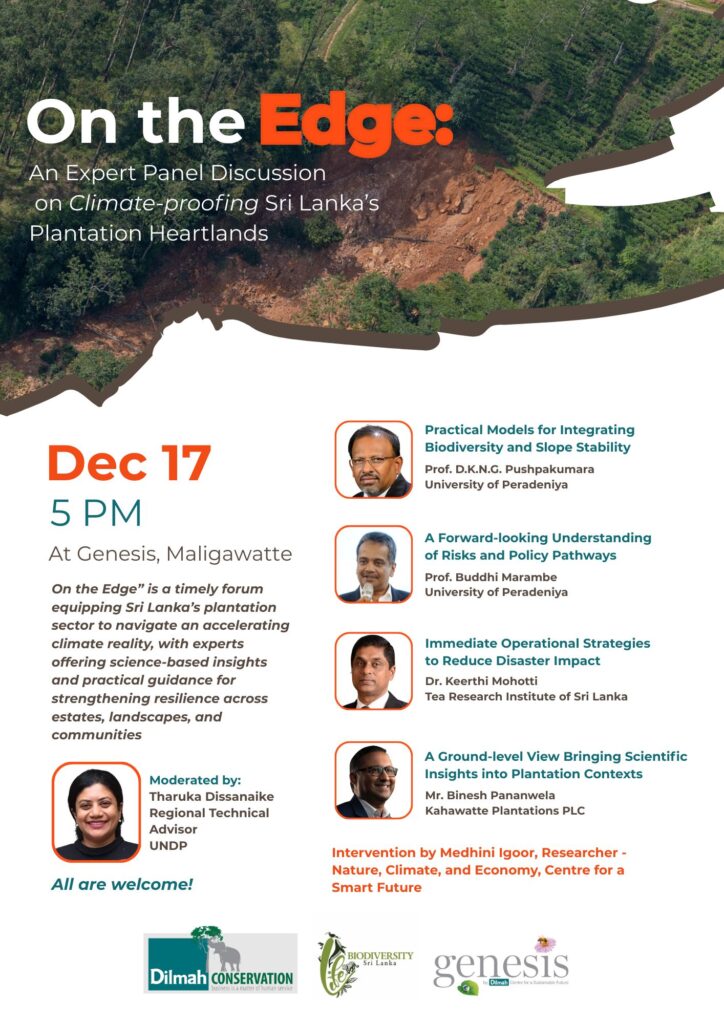 Cyclone Ditwah catastrophically exposed Sri Lanka’s extreme weather threat. How we adapt to that vulnerability will shape Sri Lanka’s socio-economic future. Biodiversity Sri Lanka and Genesis, Dilmah Centre for a Sustainable Future present this exploration of options for adapting to our new reality. Three of Sri Lanka’s eminent scientists and an industry expert explore how we could contain risk of landslide, flood and connected extreme weather events.